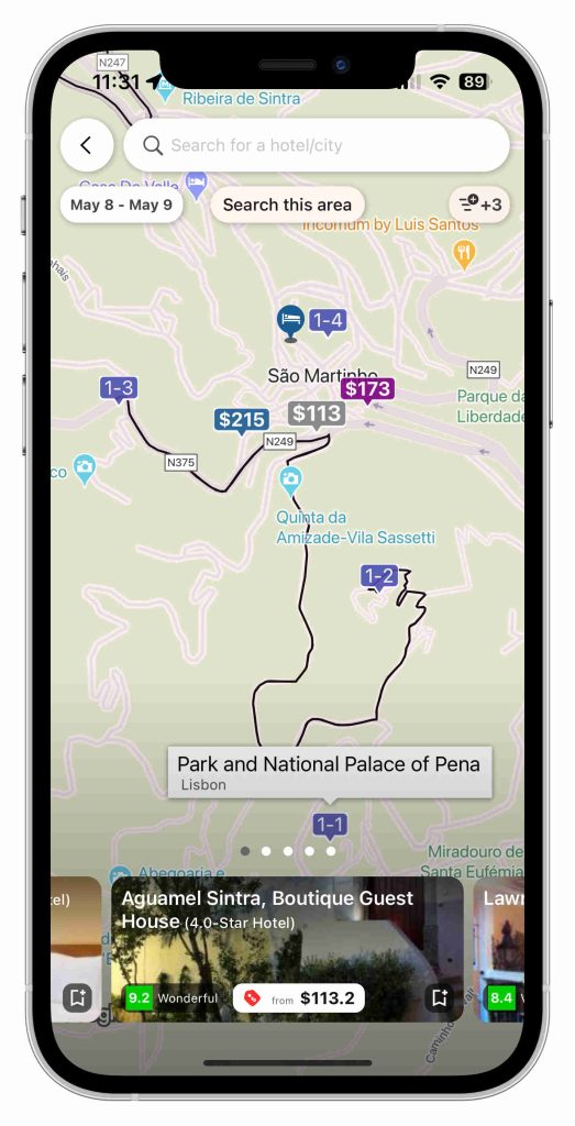 Q: Can Nowy help with finding accommodations near the Pena Palace inside Sintra?A: Absolutely! Nowy offers an endless selection of accommodation options near your destinations. Personalize your preferences and let Nowy find the perfect fit for you.