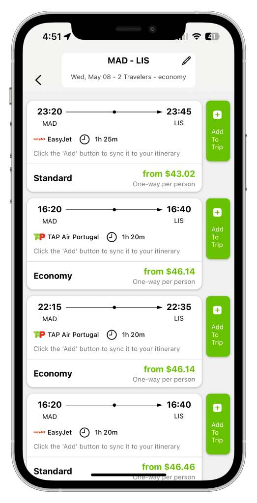(Add your flight and Nowy can display your flight information within your itinerary)