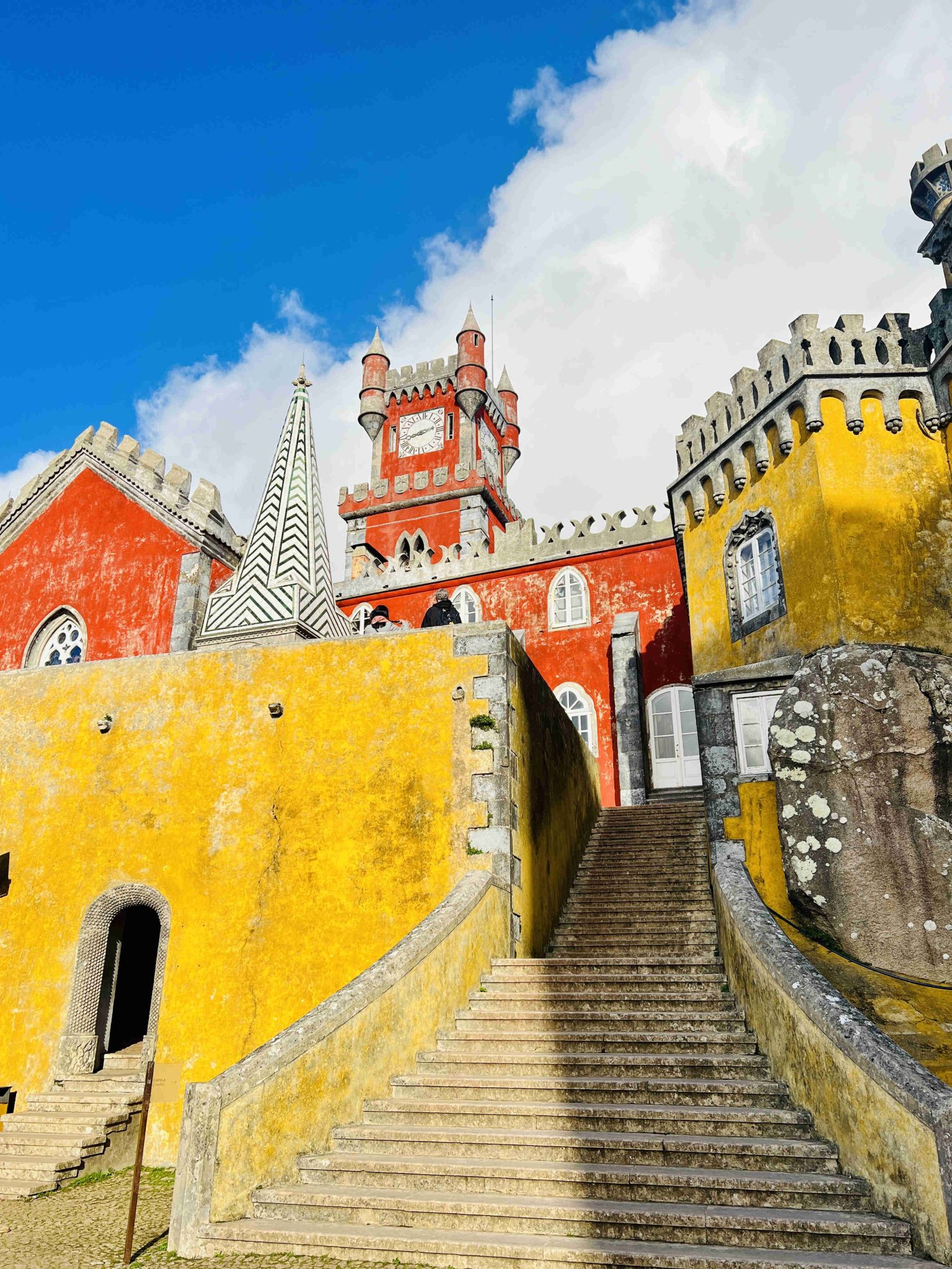 While I was planning my business trip to Lisbon, Portugal, I searched things to do in the area. Suddenly, I was immediately struck by the vibrant red and yellow hues of a picture of Pena Palace in Sintra. It almost looked like a cartoon castle come to life! I knew it right away – it will be my must-visit place in Portugal.